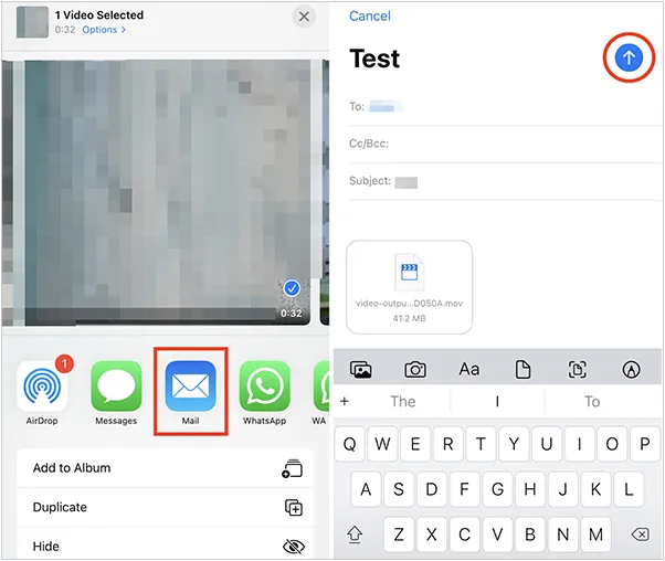 在 iPhone 上,选择文件(可以是小照片或 PDF 文档)。使用共享菜单并选择"邮件"应用。