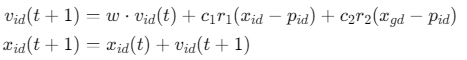 - 参数说明 : www:惯性权重(平衡全局/局部搜索) c1,c2c1,c2c1,c2:加速常数(通常取2.0) r1,r2r1,r2r1,r2:[0,1]随机数