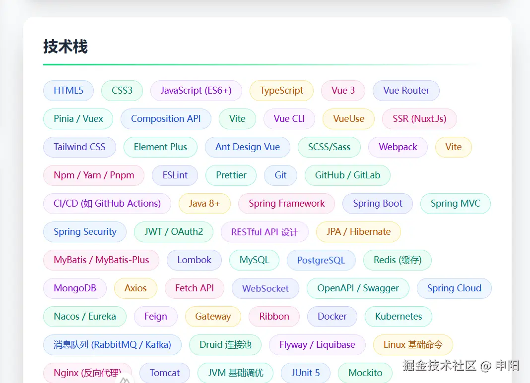 这个模块主要作用就是,展示一下自己的技术栈,知道的,了解的一股脑往上堆就好了。