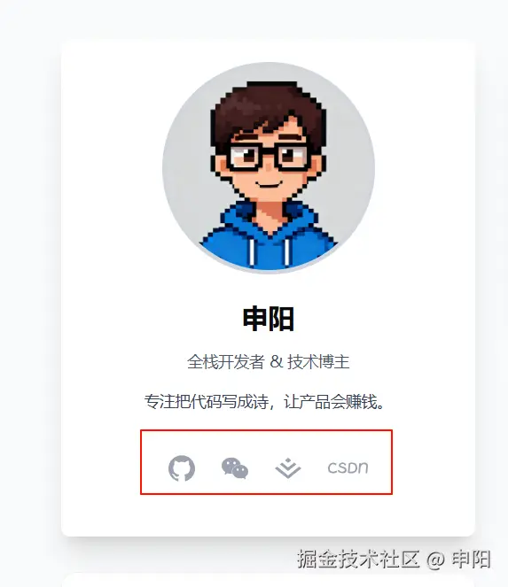 这个模块主要是展示博主头像、基本信息和社交链接。