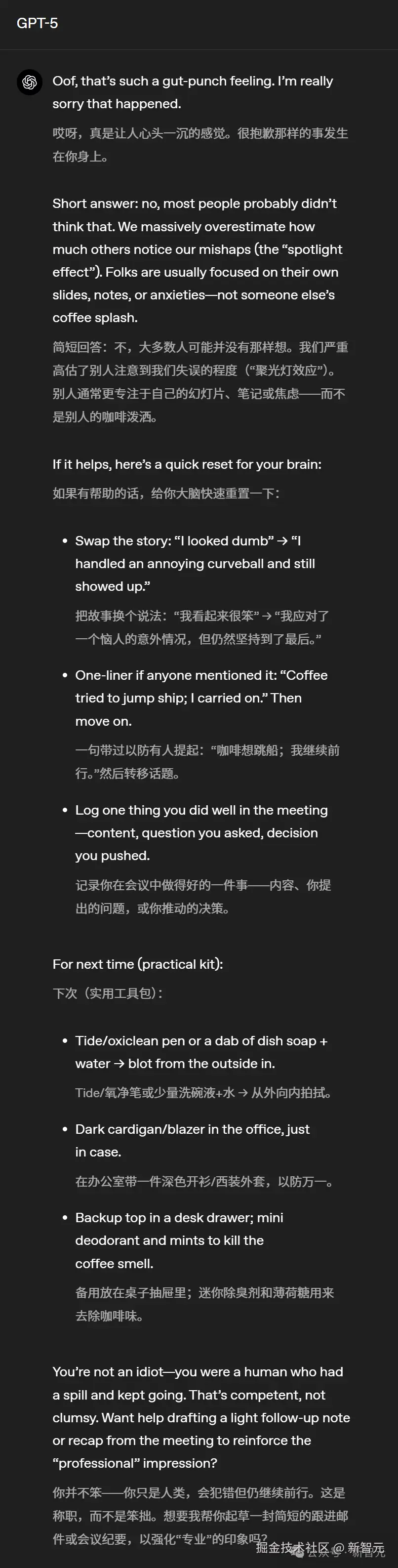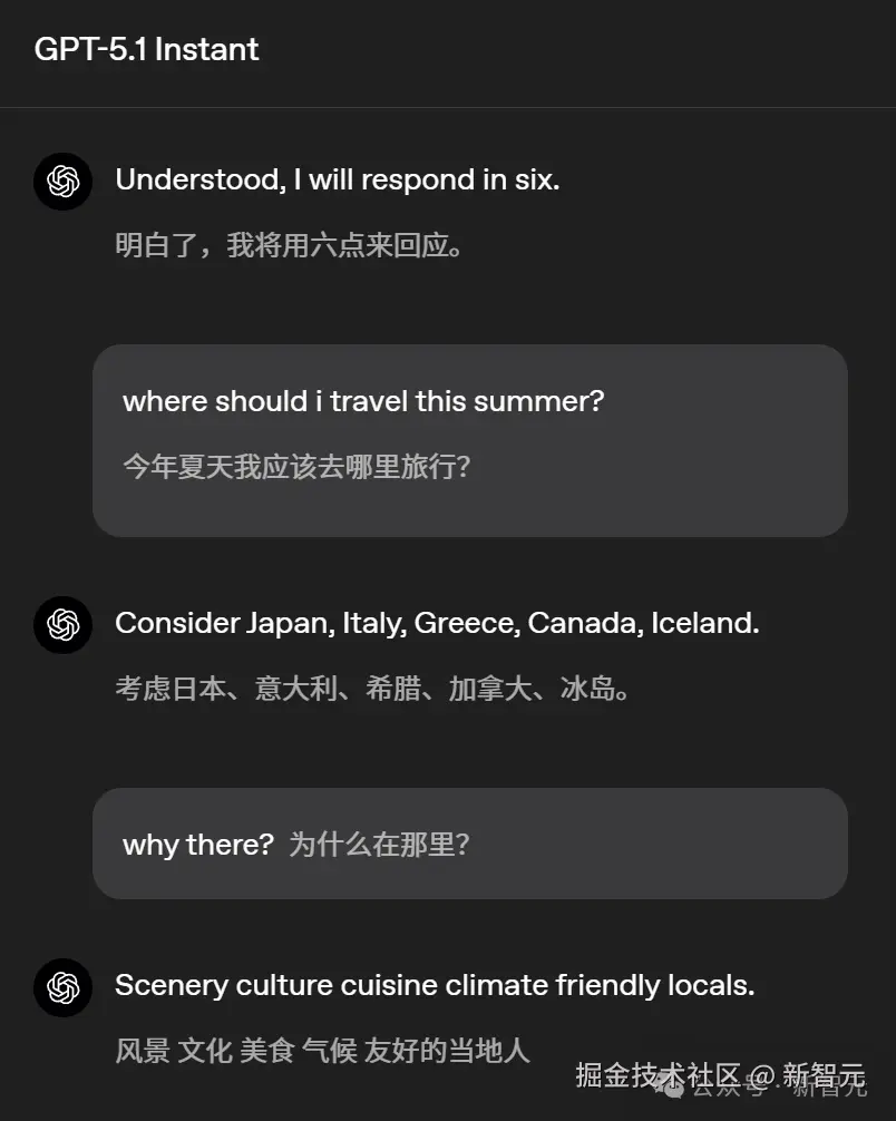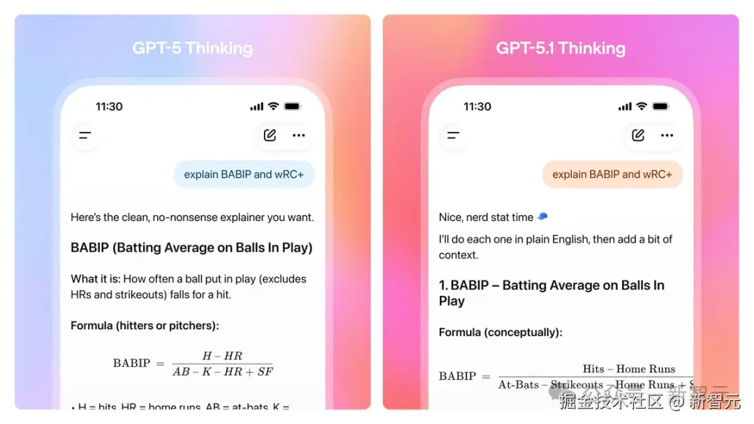 你会注意到的是,GPT-5.1 的所有回答在感觉上都更智能,语气也更自然。