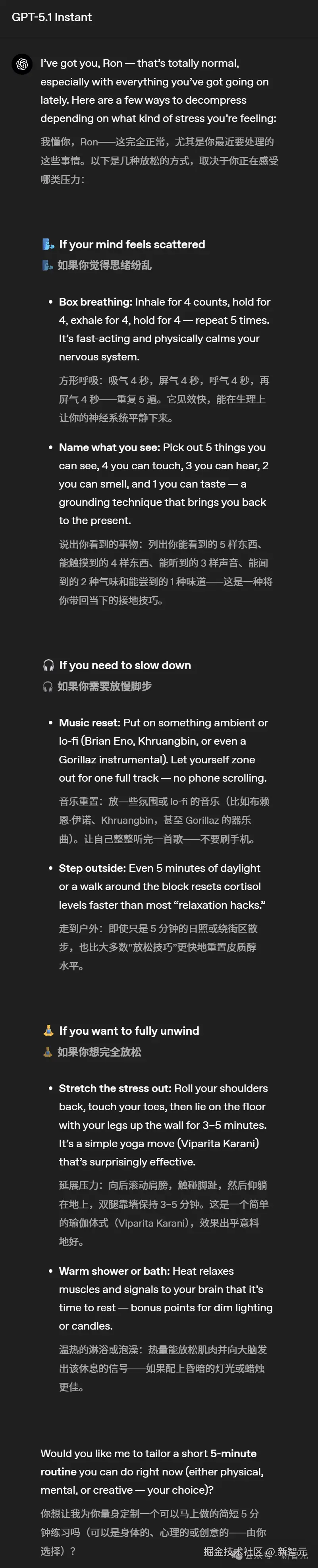 GPT-5.1 Thinking 的默认语气也更加亲切,更富同理心。
