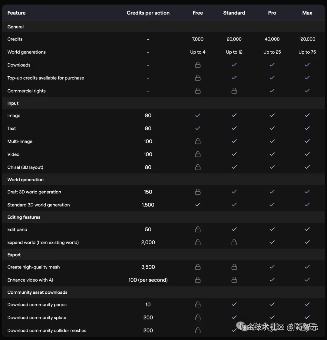 Marble 定价方面,目前共有 3 个档位,最高一个月 95 美元,可以最多生成 75 个世界。