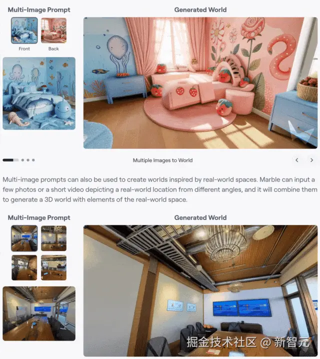 Marble 可以输入几张照片或一段从不同角度描绘现实世界位置的短视频,它会将这些素材组合起来,生成包含现实空间元素的 3D 世界。