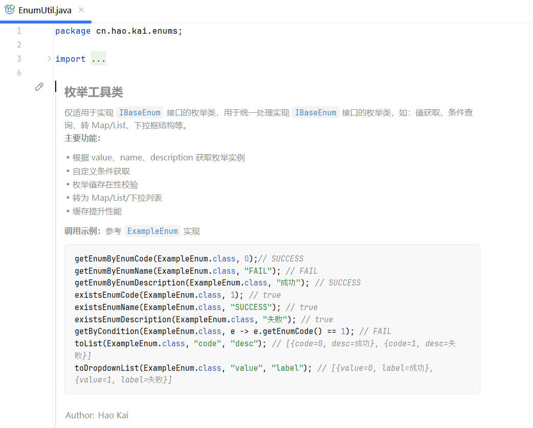 * <p><strong>调用示例:</strong>参考 {@link ExampleEnum} 实现</p>