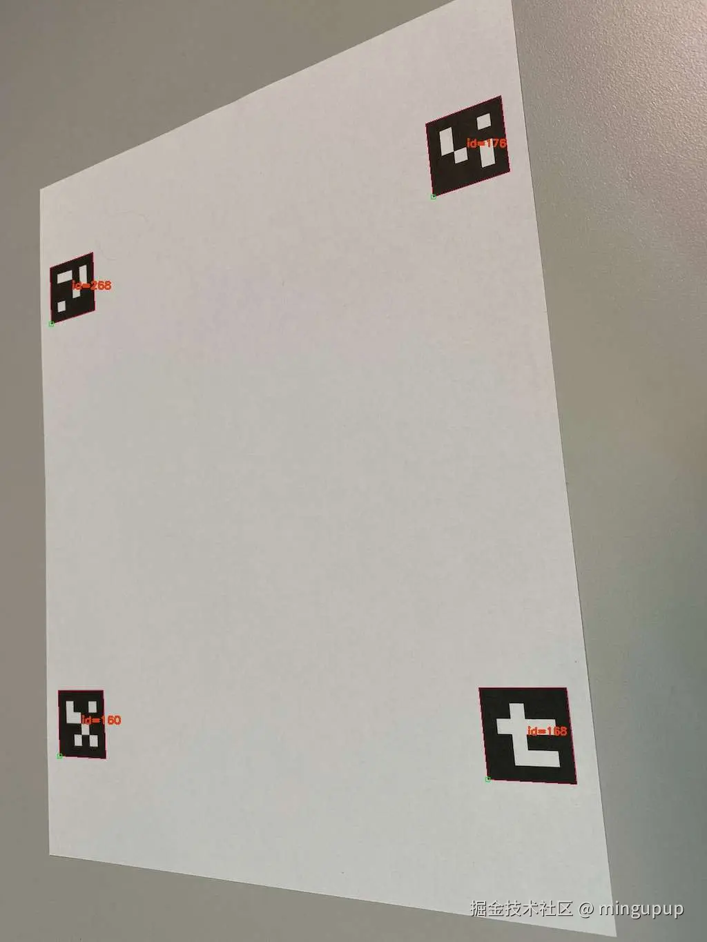 这个区域由第一个ArUco标记的左上角点、第二个右上角点、第三个左下角点与第四个右下角点组成。