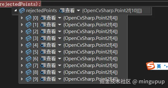 rejectedPoints - 被拒绝的候选标记(输出参数),检测过程中被识别为候选但最终被拒绝的标记角点