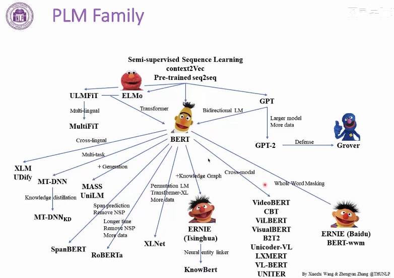 几个PLMs:word2vec(第一个PLM),GPT,BERT,...
