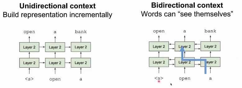 - 在双向模型中所有单词可见,对于多次出现的词,模型可能会直接使用已经的含义,不利于语言模型的学习。