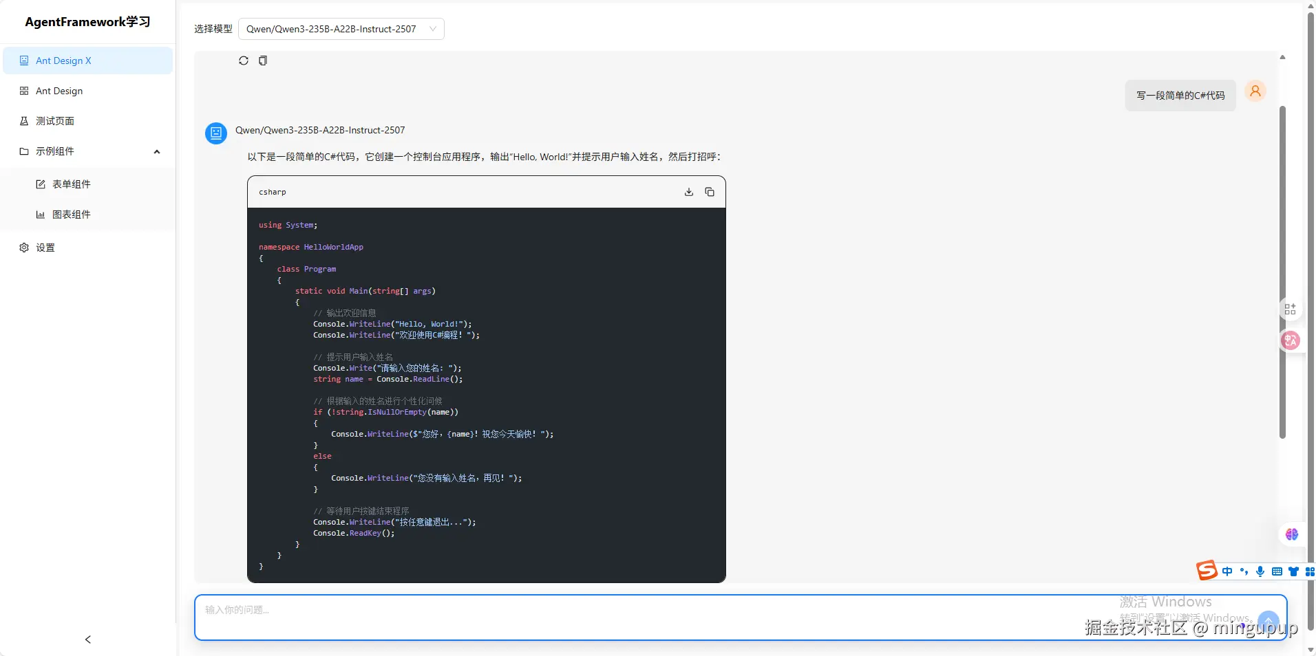 目前使用Ant Desgin X做了一个简单的AI聊天界面了,自己用AI写的组件的质量跟大厂写的肯定是不能比的,既然大厂都做的这么好了,直接用大厂做好的轮子就行了。