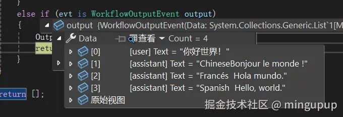 await using StreamingRun run = await InProcessExecution.StreamAsync(workflow, messages);