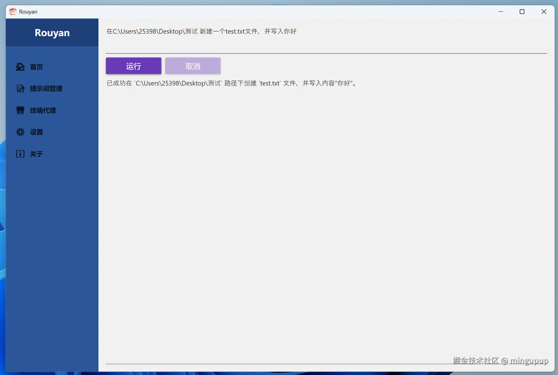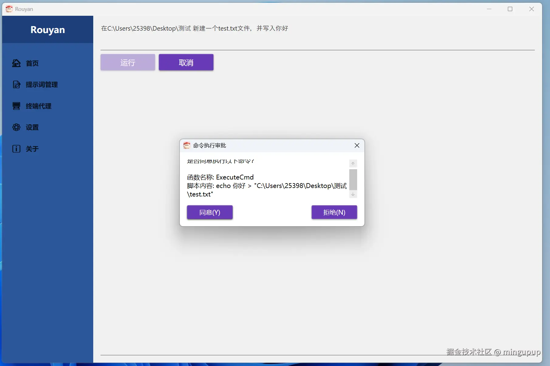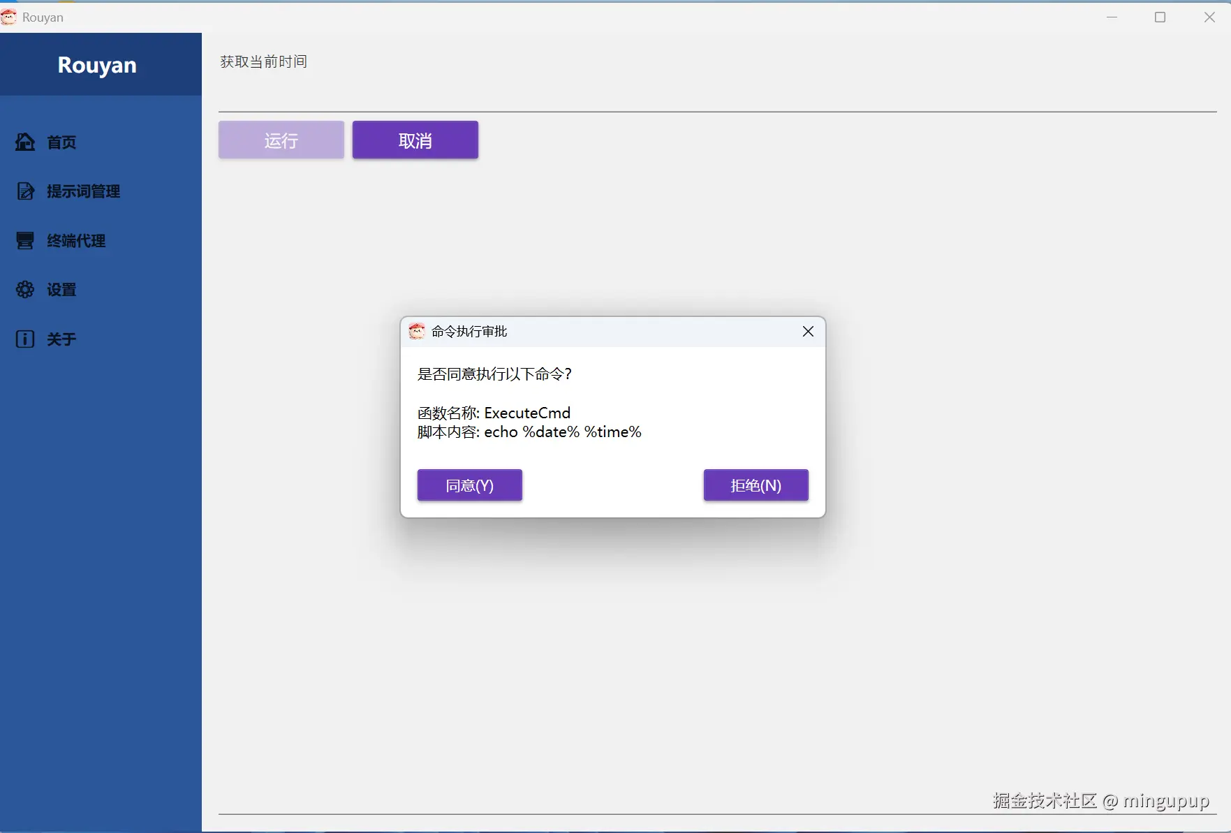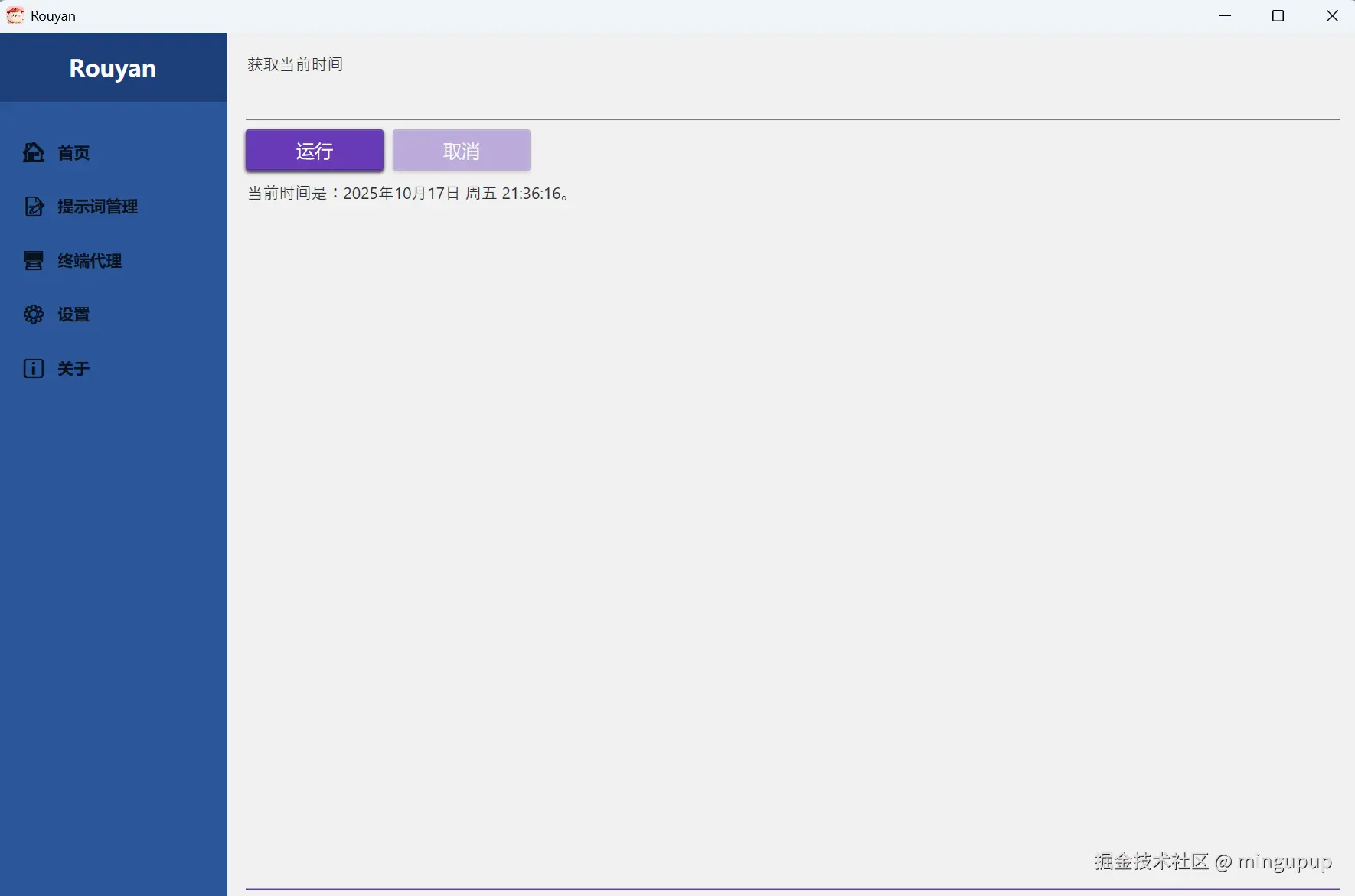 最近新出了一个Microsoft Agent Framework框架,我感觉还挺有意思的,就通过它的那个Using function tools with human in the loop approvals例子,做了一个终端助手Agent。我觉得使用这个作为学习人在环上这个例子蛮合适的,因为对于需要执行敏感操作(如系统命令)的场景,人工审批机制显得尤为重要。本文以Rouyan为例,说明如何使用Microsoft Agent Framework创建一个能够执行终端命令并具备人工审批功能的WPF应用。