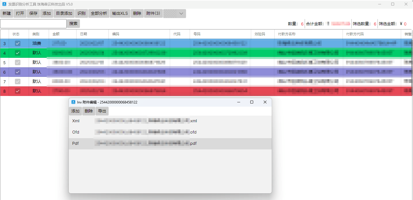 2.自动合并,按照发发票号码自动将一样的发票合并,并将 例如xml pdf文档附件方式合并在一起。