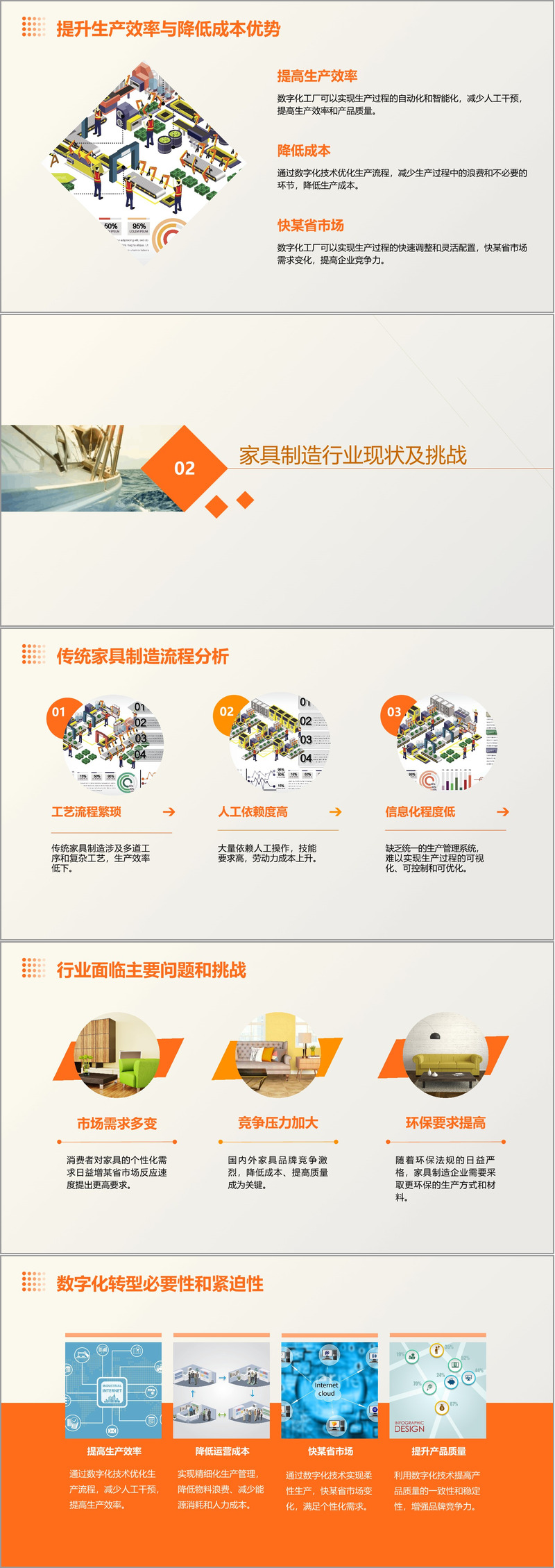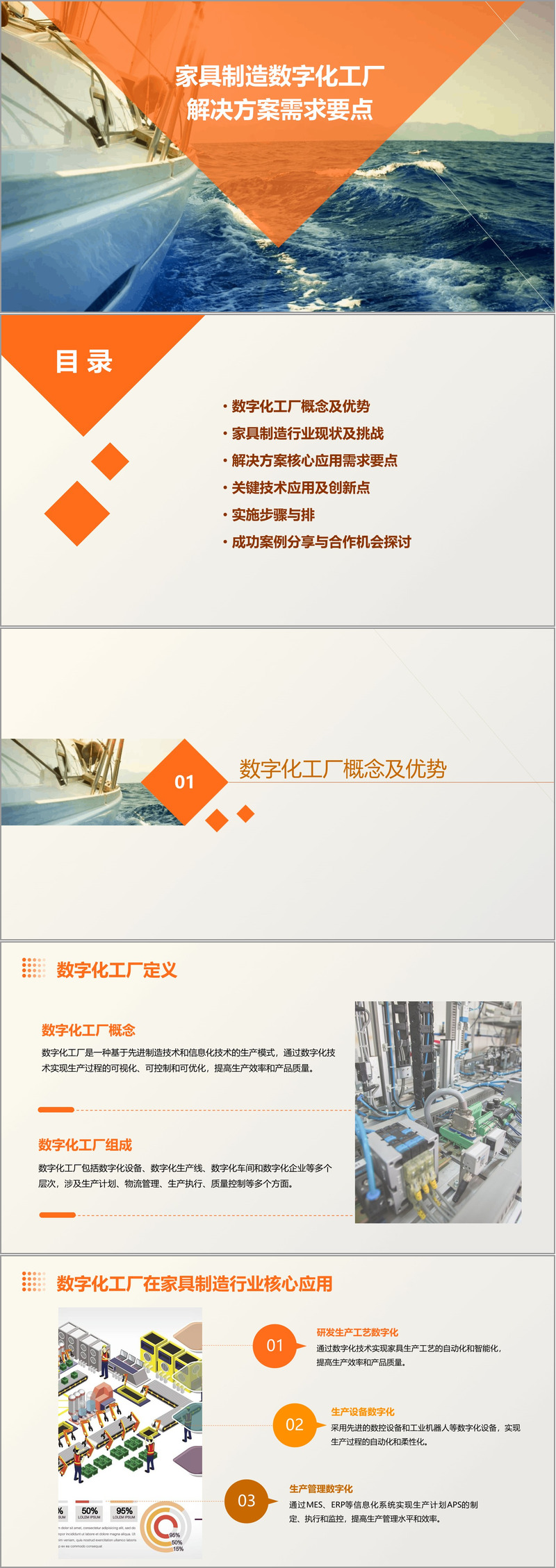 从数字化工厂概念及优势来看,数字化工厂依托先进制造与信息化技术,实现生产过程可视化、可控制与可优化,包含数字化设备、生产线、车间及企业多个层次,涉及生产计划、物流管理等多方面。在家具制造行业,其核心应用体现在研发生产工艺、生产设备、生产管理的数字化,能有效降低成本、快速响应市场、提高生产效率与产品质量,为企业提升竞争力奠定基础。