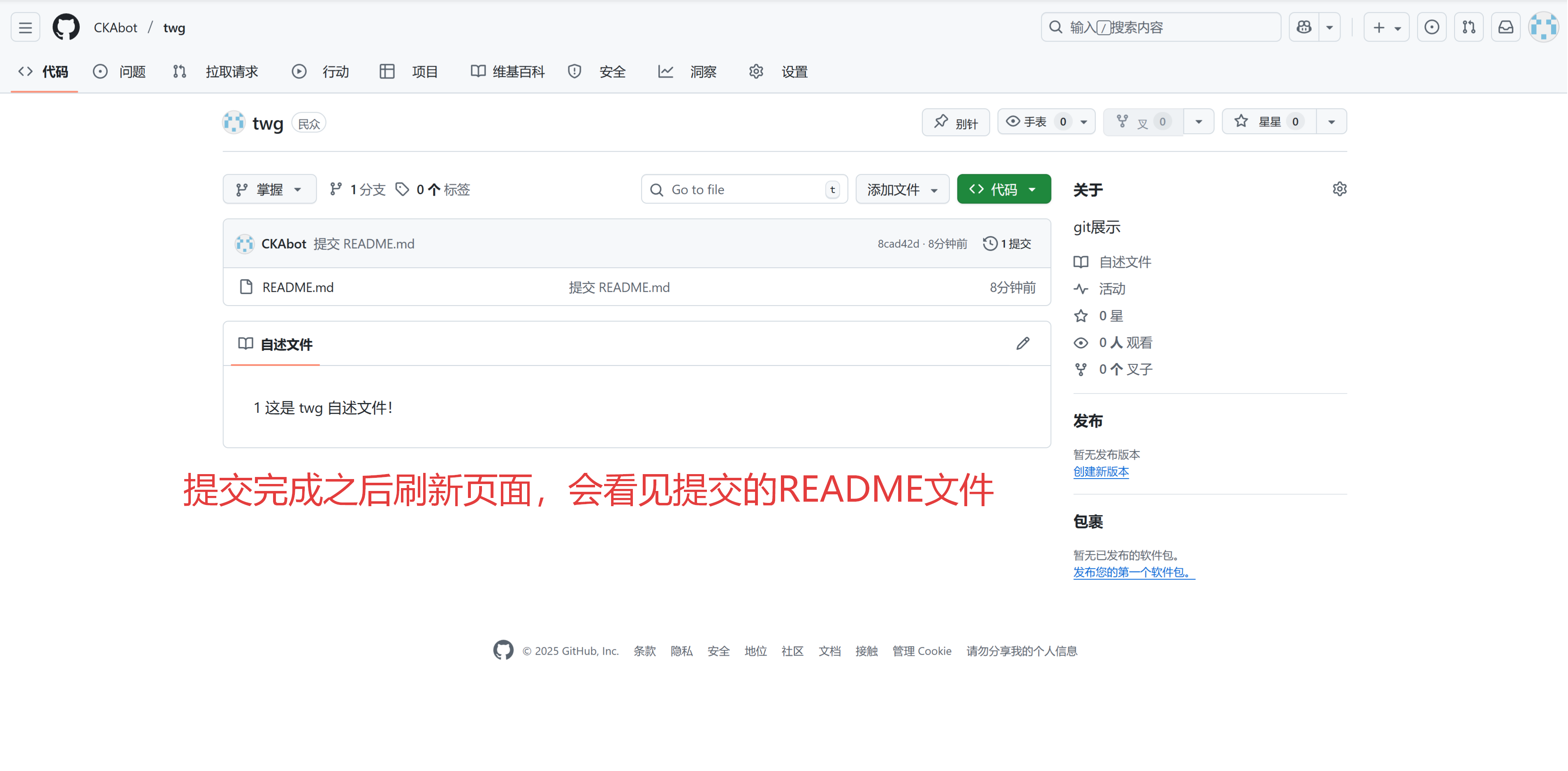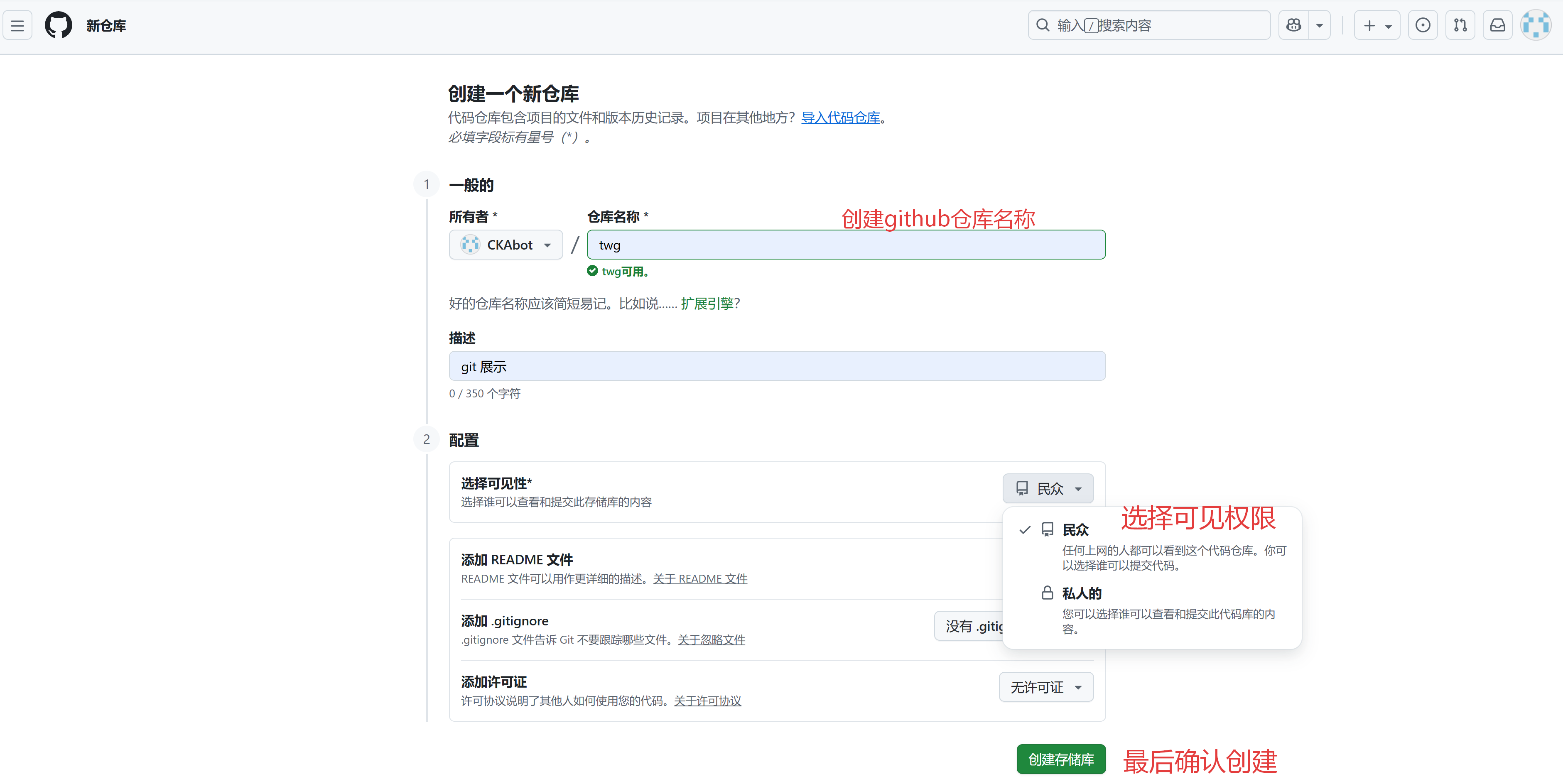 # 1. 登录GitHub → New repository → 填写仓库名(如myproject)→ Create repository