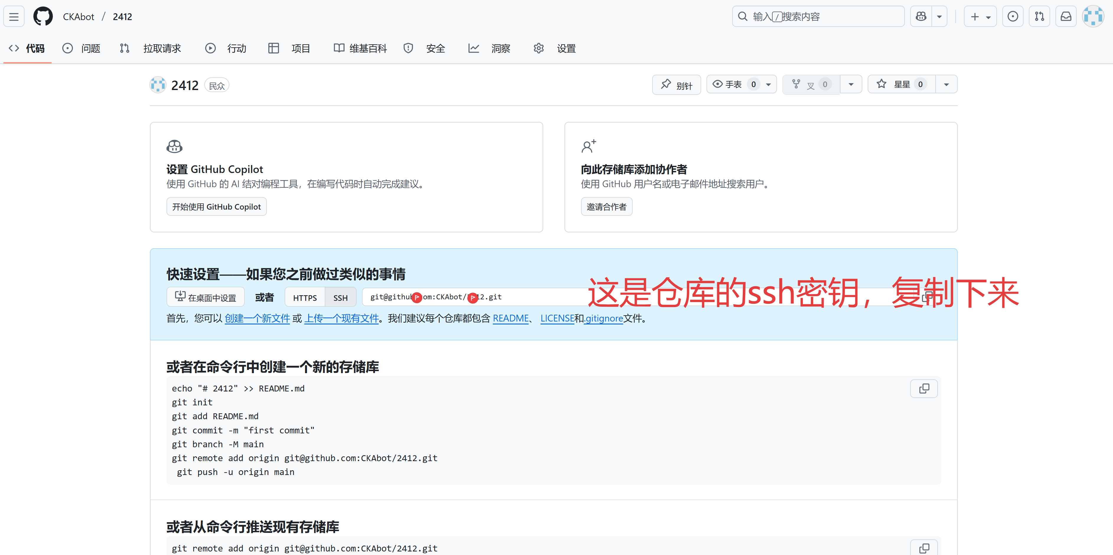 # 2. 复制远程仓库SSH地址(如git@github.com:用户名/myproject.git)