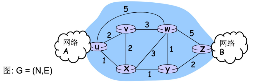 a.c(x, x') = 链路的代价 (x, x'), 比如: c(w, z) = 5