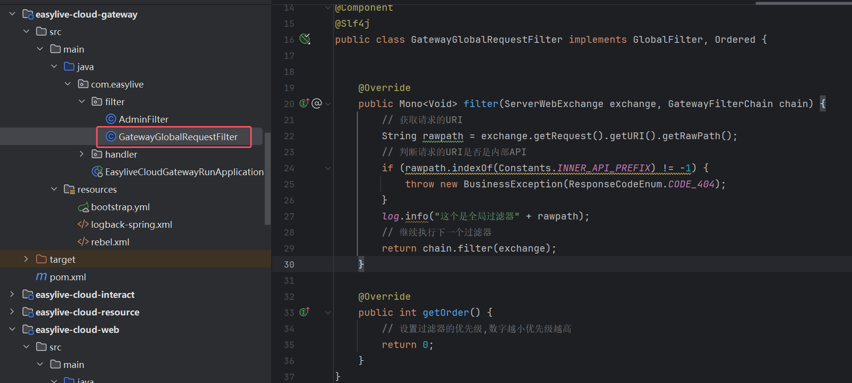 在gateway服务中创建全局拦截器: