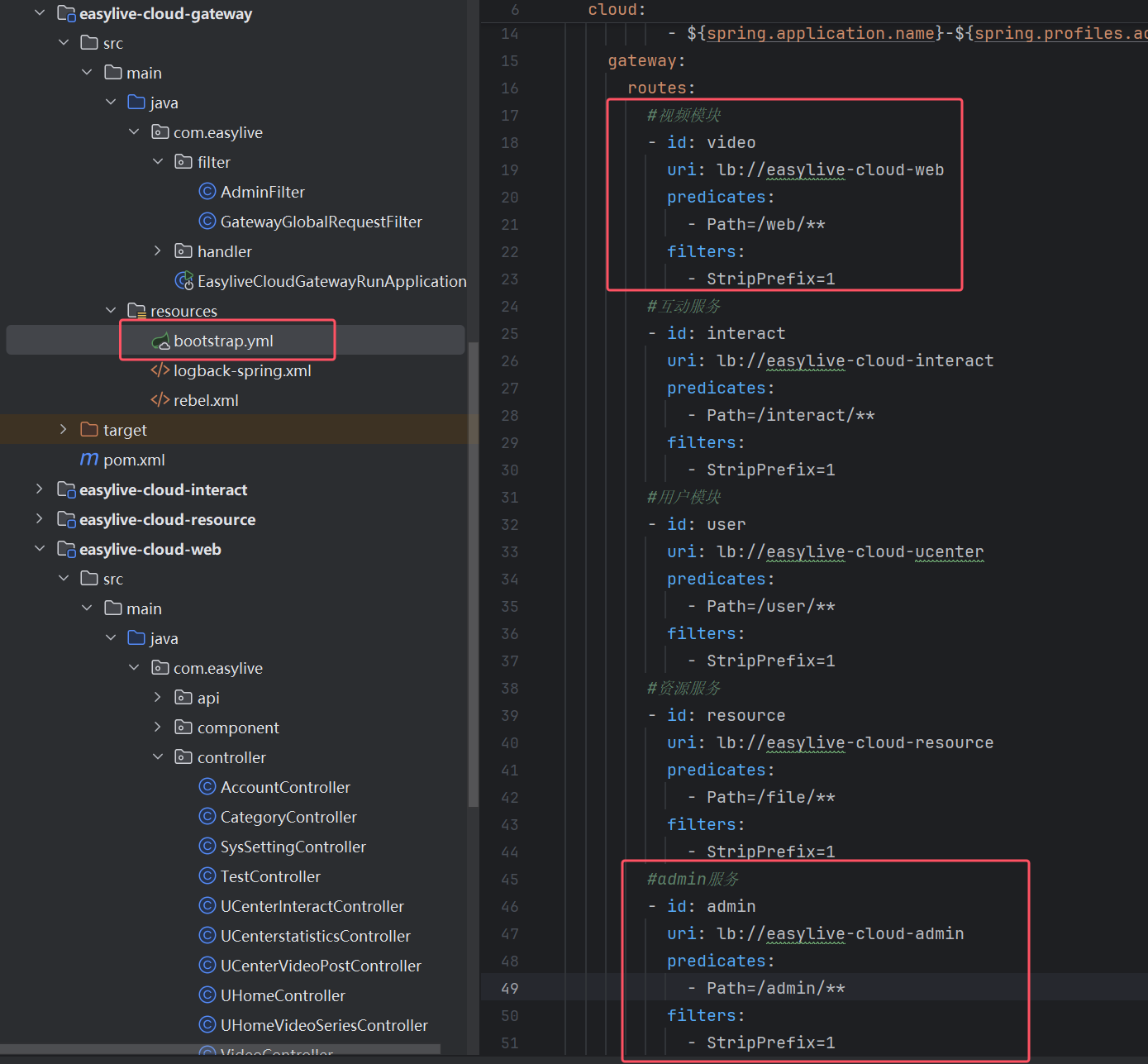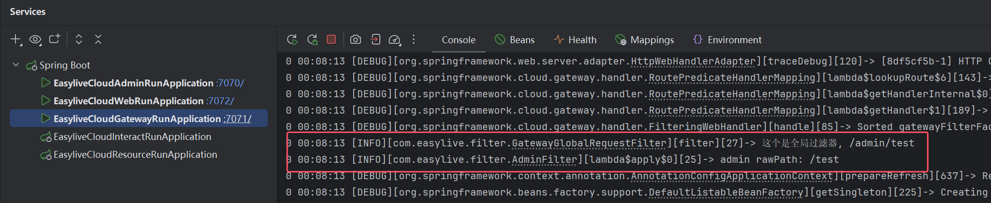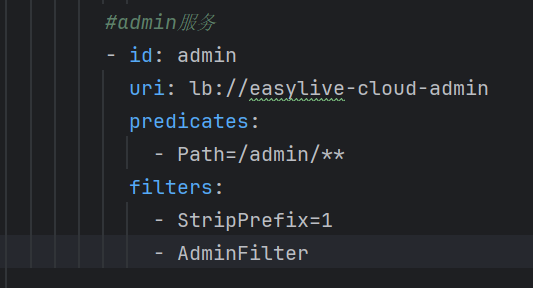 gateway中的服务配置,对于admin服务需要添加AdminFilter: