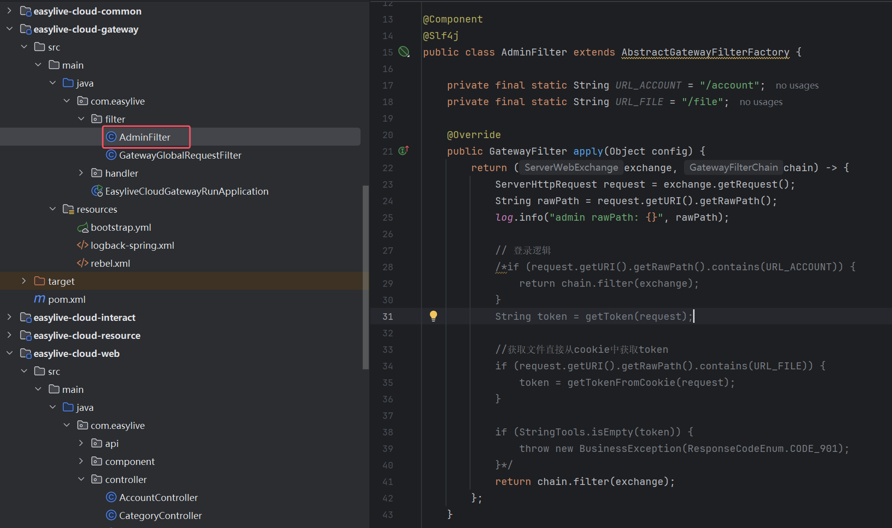 gateway服务中创建一个全局过滤器。