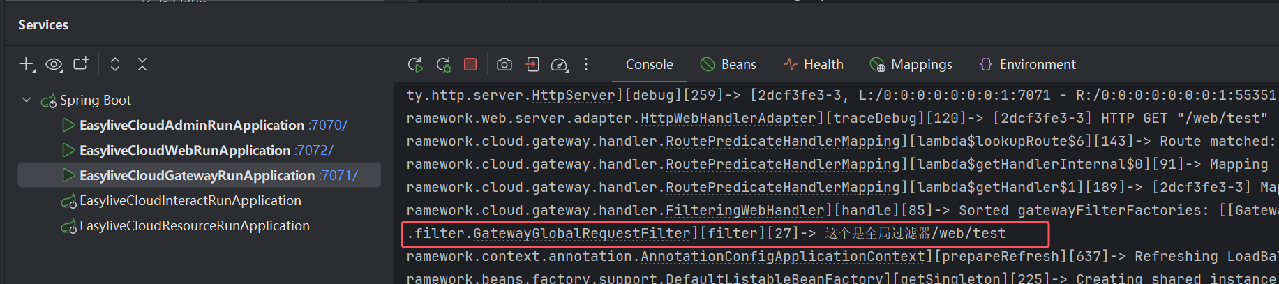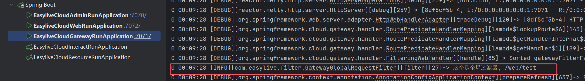 gateway服务控制台打印日志: