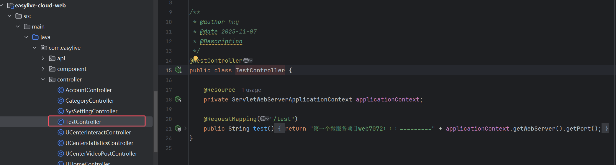 web微服务创建test接口: