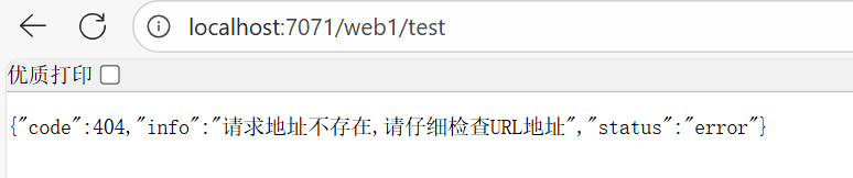 此时,访问无效地址,可以json显示先关的错误信息: