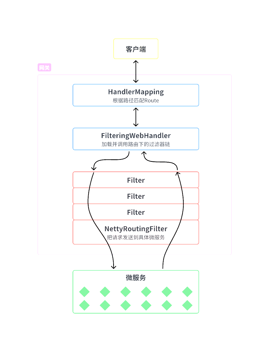 id:路由的唯一标示predicates:路由断言,其实就是匹配条件filters:路由过滤条件,后面讲uri:路由目标地址,lb://代表负载均衡,从注册中心获取目标微服务的实例列表,并且负载均衡选择一个访问。