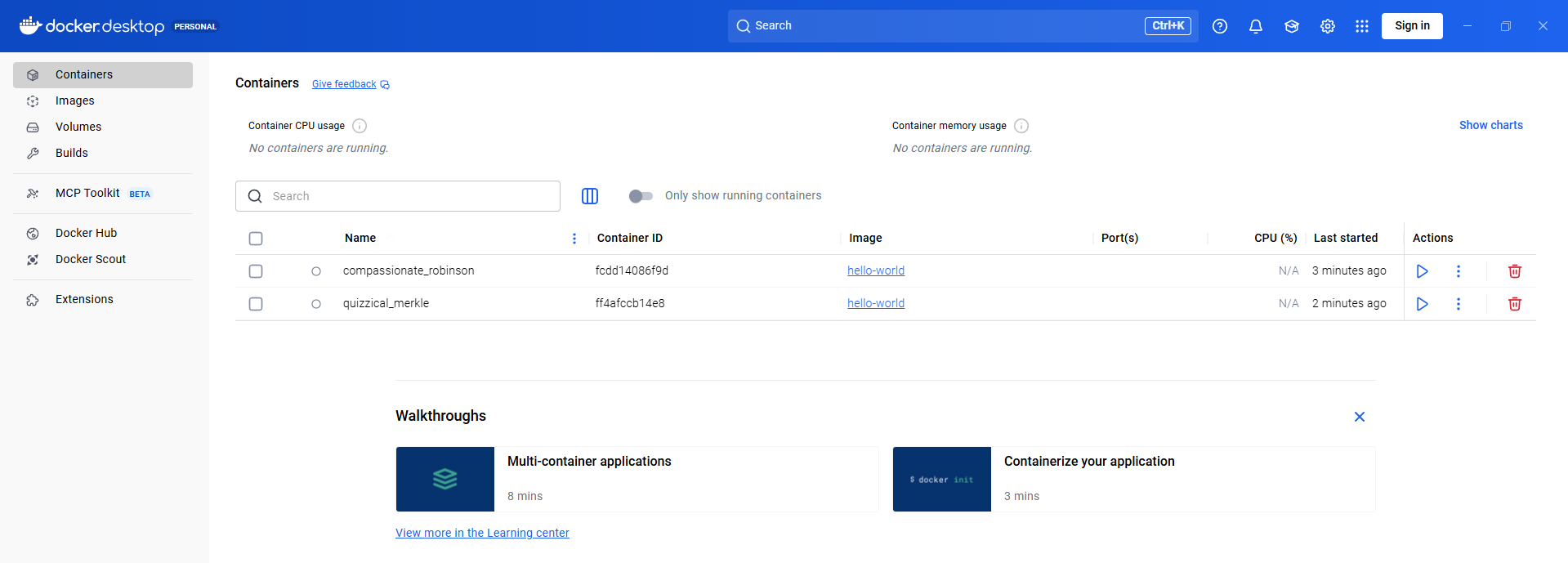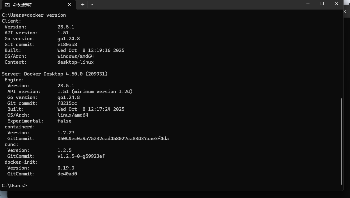 | ⚠️ Docker Desktop 启动时卡在 "Starting" | 重启电脑;确保 WSL2 安装成功;或执行 wsl --set-default-version 2 |