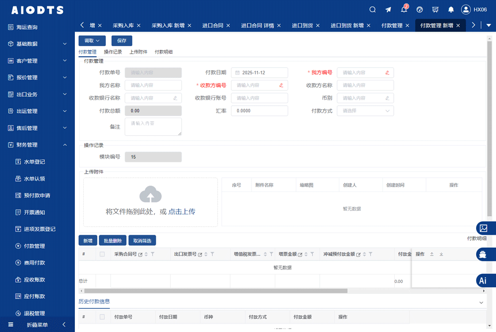 针对大豆进口的业务特点,汇信外贸软件打造了专业的外贸订单管理系统,涵盖从采购到销售的全流程数字化管理。