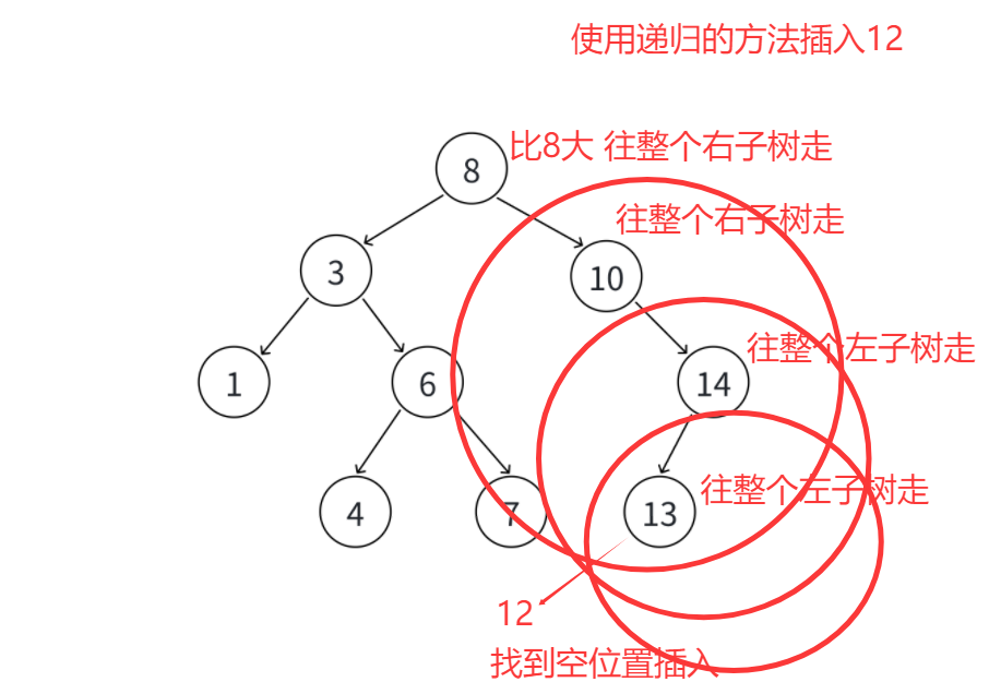 - 递归插入本质上只处理一种核心场景:找到二叉搜索树中"应该插入新节点的空位置"。无论是根节点为空(直接插入根节点),还是非空树中寻找插入点,最终都会落到"对空指针进行赋值"这一步------因为递归会一层层深入,直到找到符合条件的空节点位置。