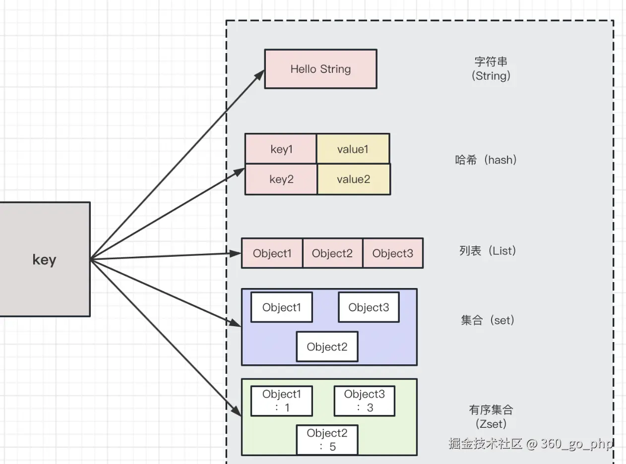 Redis 提供了多种数据类型,可以满足不同场景下的需求。常见的数据类型包括: