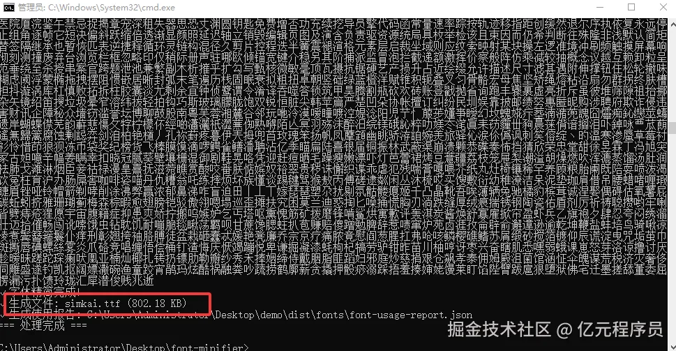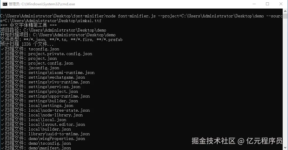 通过 node font-minifier.js --project=C:\Users\Administrator\Desktop\demo --source=C:\Users\Administrator\Desktop\simkai.ttf传入工程目录和原字体路径即可。
