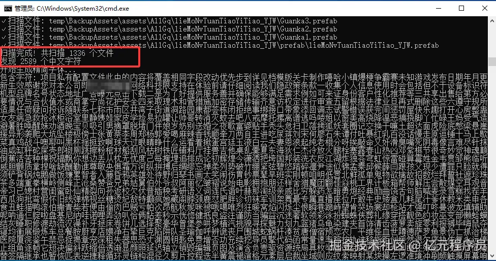 要提取 中文字,我们只需要按照上面的原理,遍历我们的游戏项目中的游戏配置 、预制体 、场景 和代码进行匹配即可。