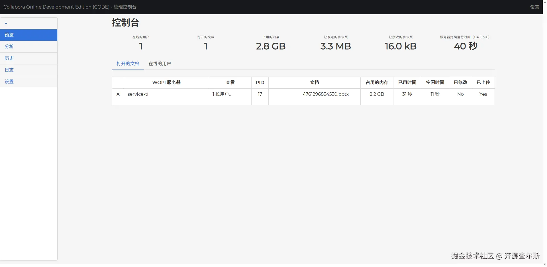 此时,我已经感觉有些不对劲了,脑海里闪过两个片段:同一份 PPT 文件,测试环境 Collabora 控制台显示内存占用似乎一直都是几百 MB;我本地测试时,同一份 PPT 文件要占用 2 个多 G 内存。