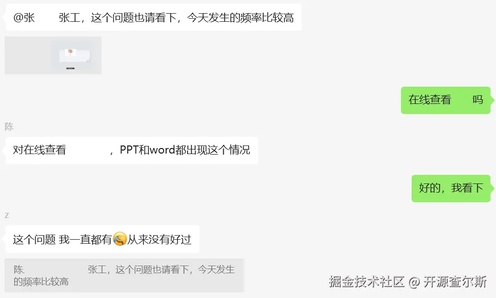 上午9:41,客户群如定了闹钟般发来一条消息提醒。点开闪烁的群消息,"@我 张工,这个问题也请看下,今天发生的频率比较高"。正准备按计划开发需求的我,顿时被按下了暂停键。一句"好的,我看下",我怎么也没想到直到18:01我才最终修复了它,而且修复方式非常"戏剧化",特此记录下整个过程。