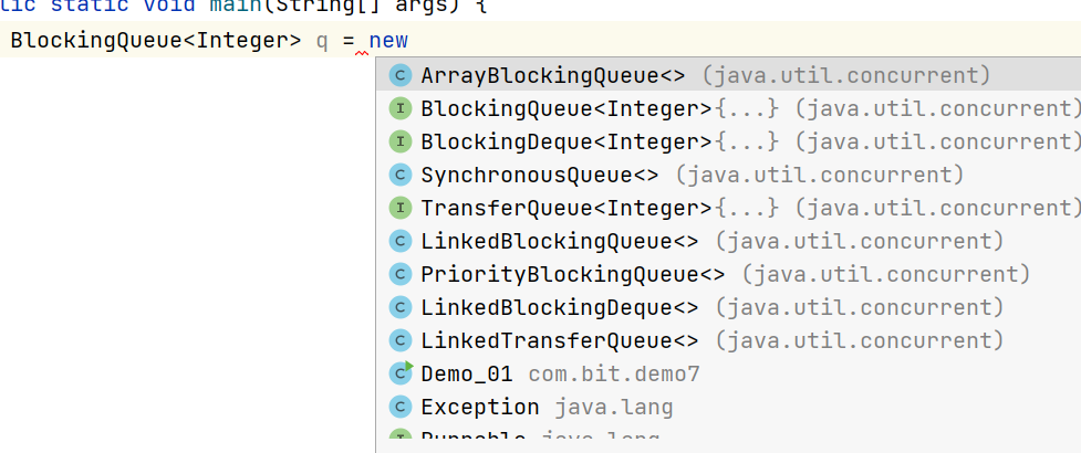 BlockingQueue<Integer> q = new ArrayBlockingQueue<>(3);