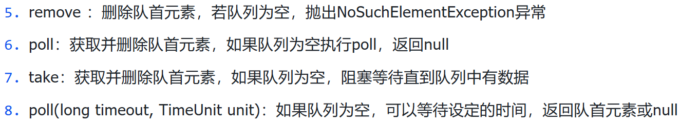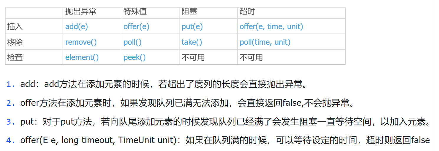 当队列空的时候,继续出队列也会阻塞,直到有其他线程往队列中插入元素,有元素再出队。