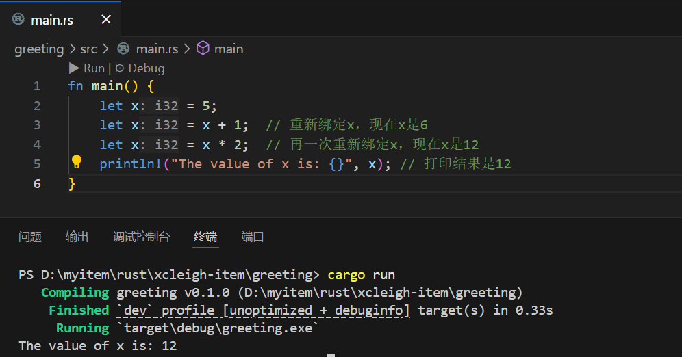 另外,Rust 里的变量默认是"不可变"的,要是想让变量能改值,必须用 mut 关键字声明。比如这样写: