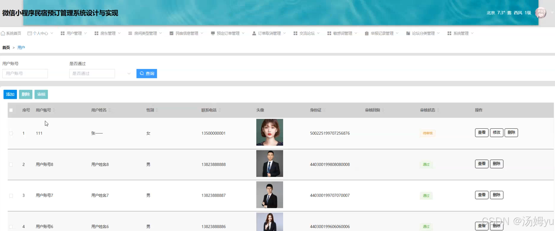 微信小程序民宿预订管理系统从用户角度来看,该系统能够提供一个集中展示民宿信息的平台,用户可以随时随地通过微信小程序浏览不同民宿的详细信息,包括房间类型、价格、设施、用户评价等,从而快速找到符合自身需求的民宿并完成预订。系统还支持在线支付、订单管理等功能,极大地提高了预订的便捷性和效率。对于民宿经营者而言,该系统能够帮助他们更好地管理房源信息、订单状态和客户反馈,提升运营效率和服务质量。通过数据分析功能,经营者可以深入了解客户需求,优化民宿产品和服务,从而在激烈的市场竞争中脱颖而出。从社会层面来看,该系统的推广使用有助于推动民宿行业的规范化和信息化发展,促进旅游业与互联网技术的深度融合,为地方经济发展和旅游业转型升级提供有力支持。