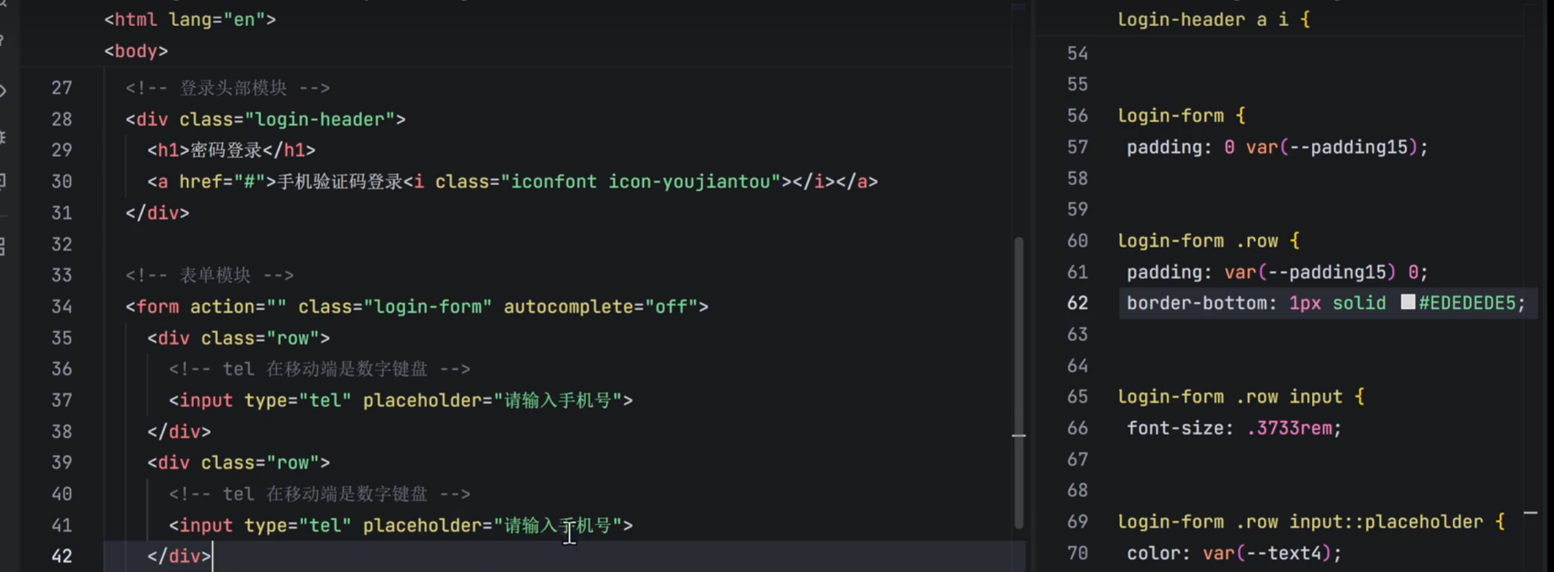 表单提交的目标 URL(服务器地址) | action="/login" |