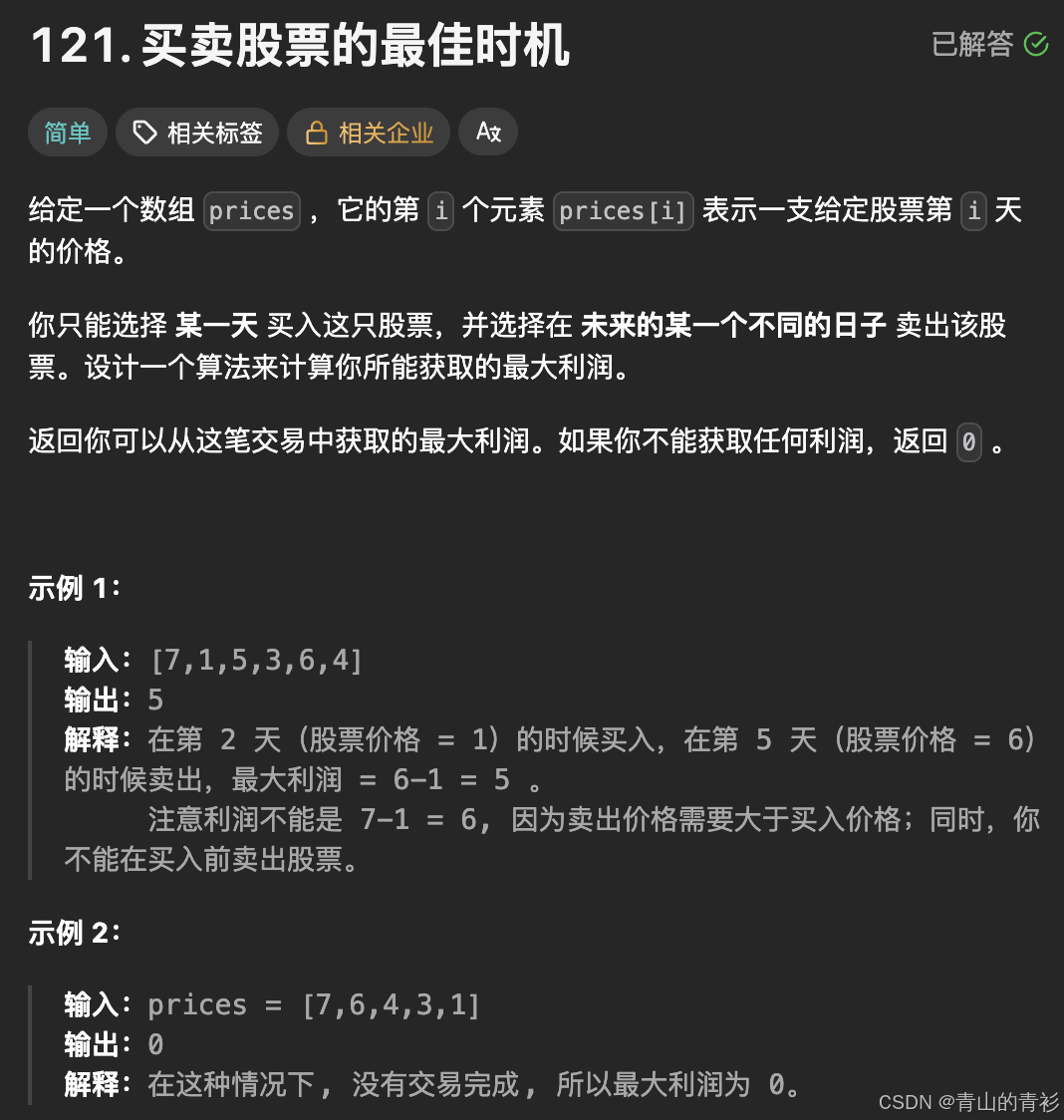 - [LeetCode 121.买卖股票的最佳时机](#LeetCode 121.买卖股票的最佳时机)