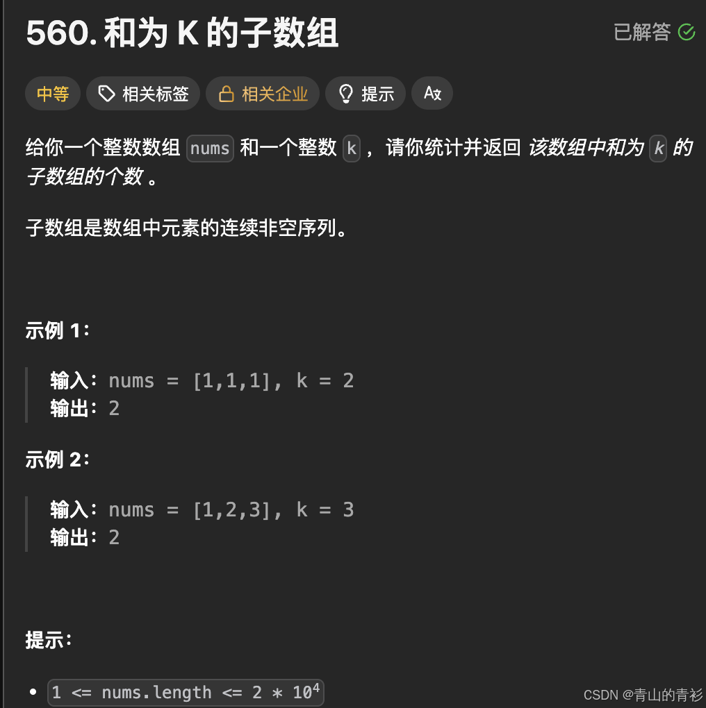 - [LeetCode 560.和为K的子数组](#LeetCode 560.和为K的子数组)