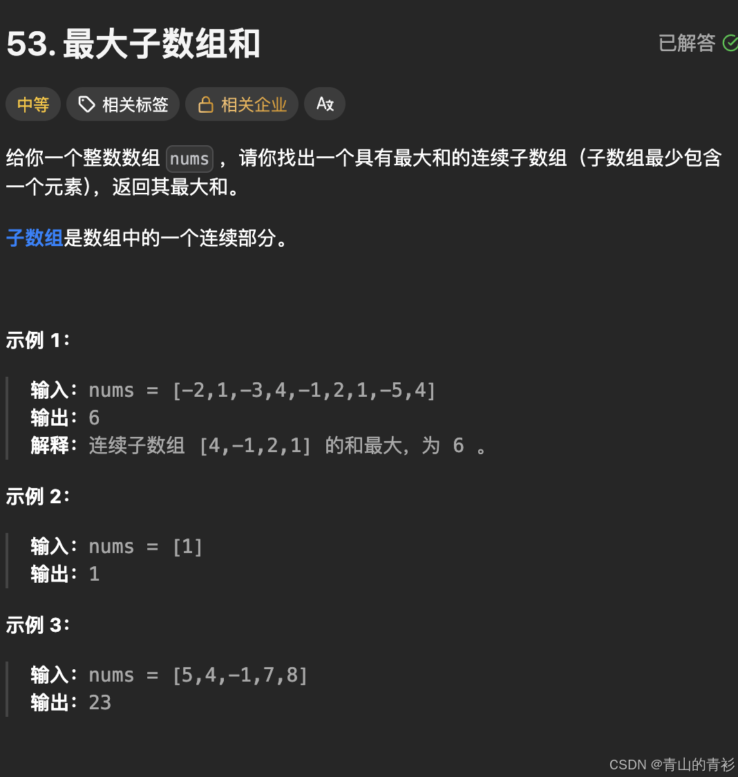 - [LeetCode 53.最大子数组和](#LeetCode 53.最大子数组和)