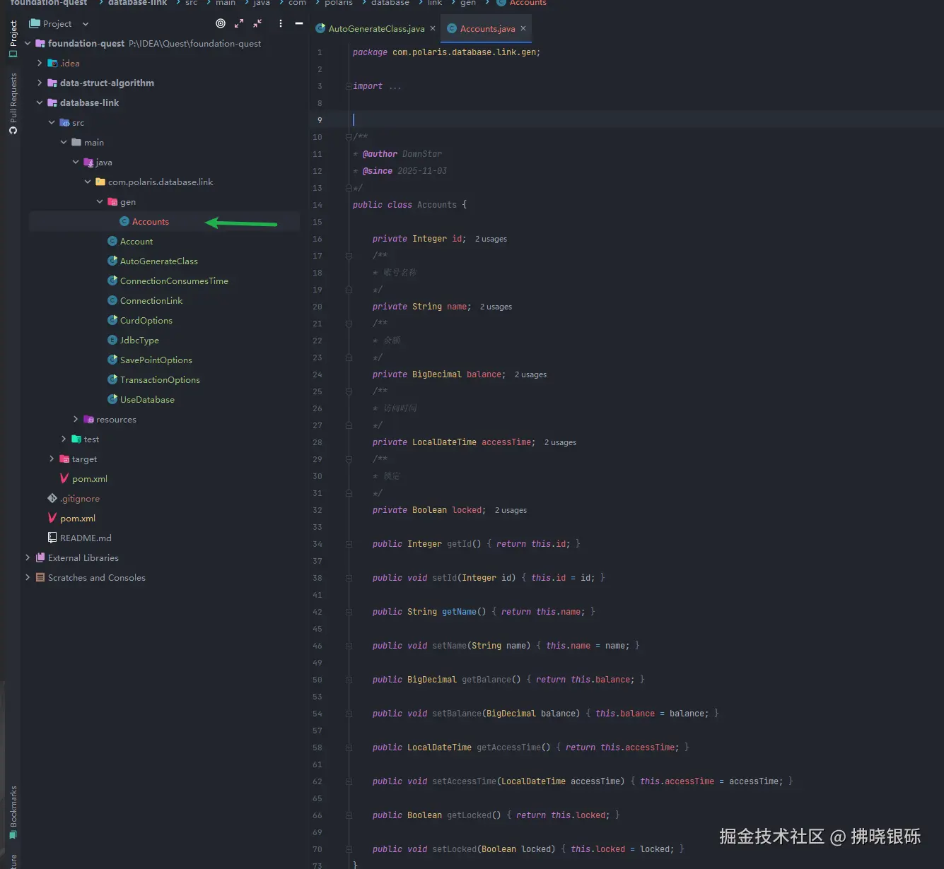 来获取表名称。注释中每一列都有标有其对应数据类型,我们根据对应的数据类型选择 getXxx方法。