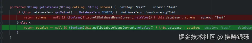 至于是选择哪个,在com.mysql.cj.jdbc.DatabaseMetaData的代码有判断,默认是CATALOG