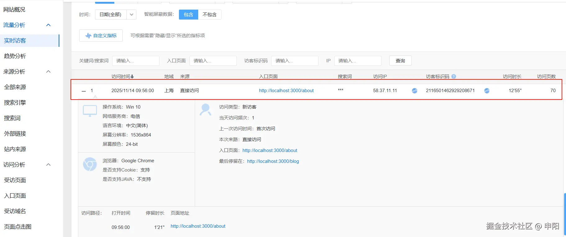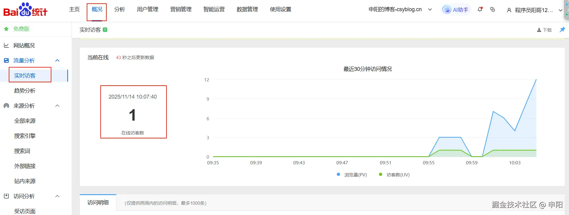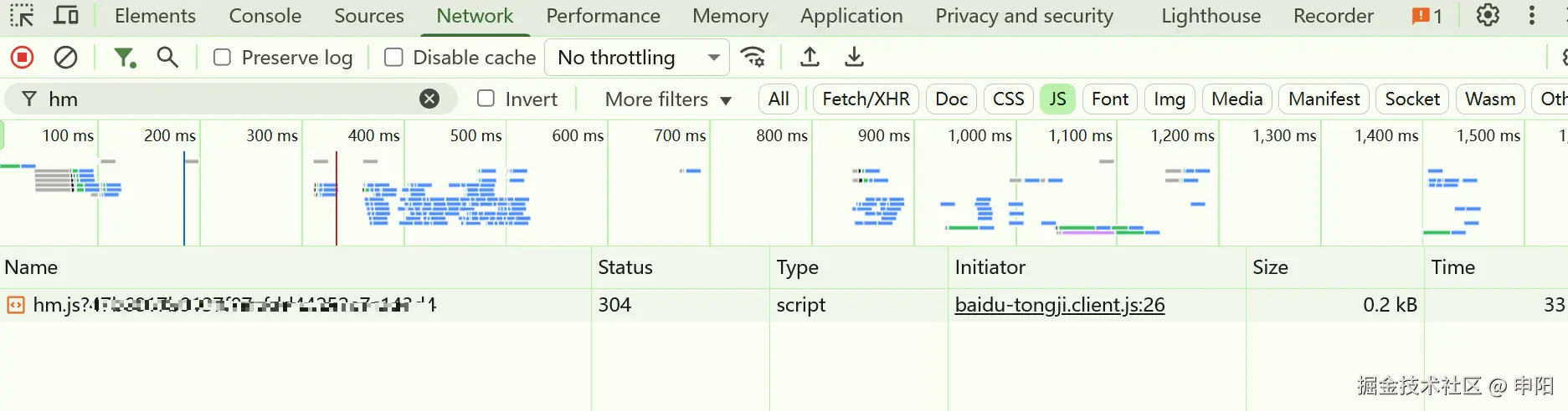 hm.js?xxx - 登录 百度统计后台,查看实时访客数据。