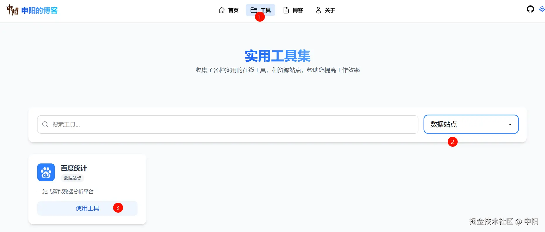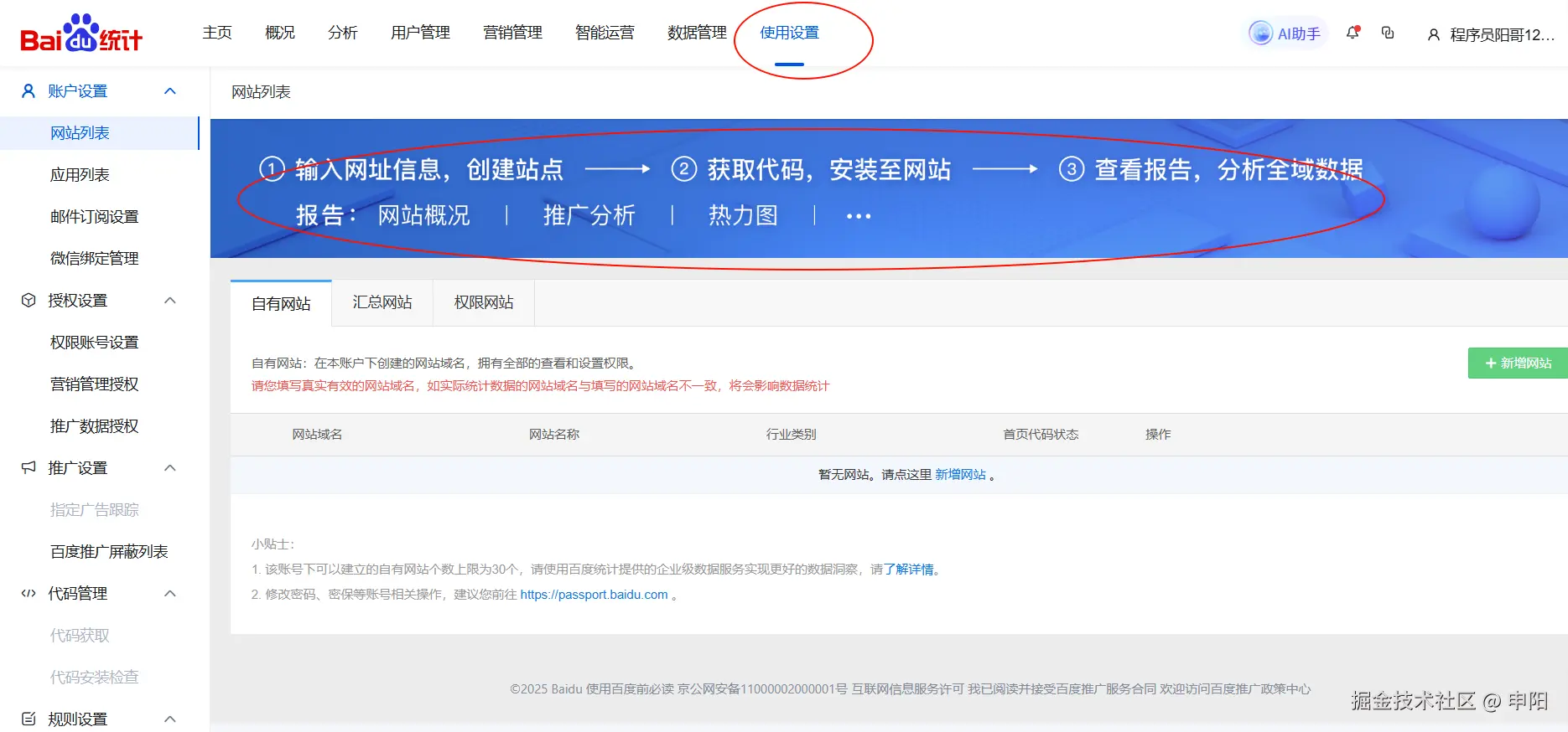 点击工具菜单 --> 选择数据站点分类 --> 看到百度统计,点击使用工具即可进入页面