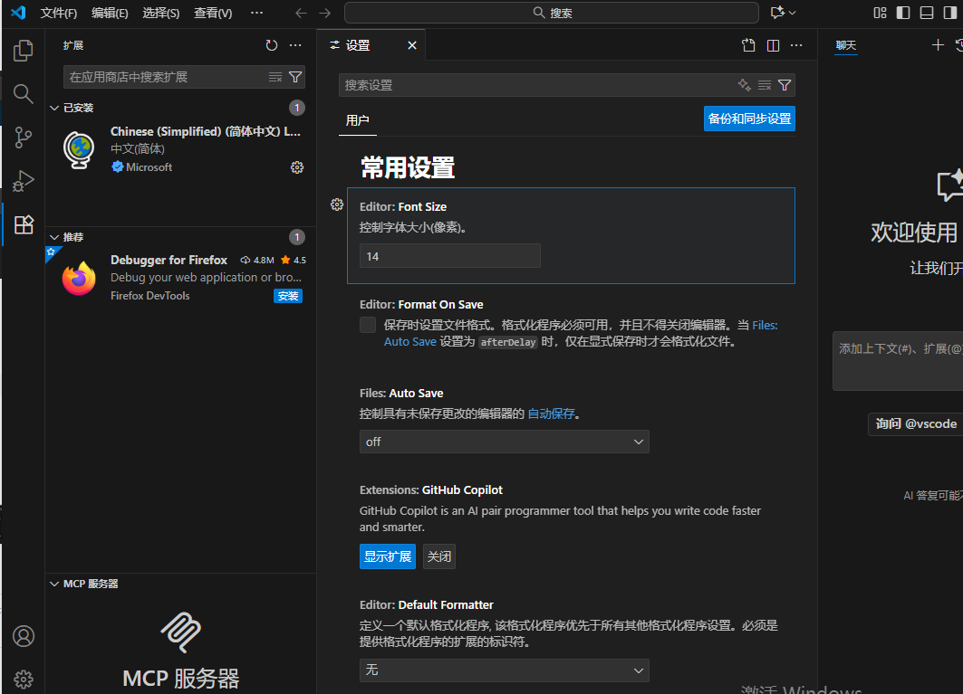 | settings.json | 保存个人或工作区设置 | 设置(Ctrl +,) |