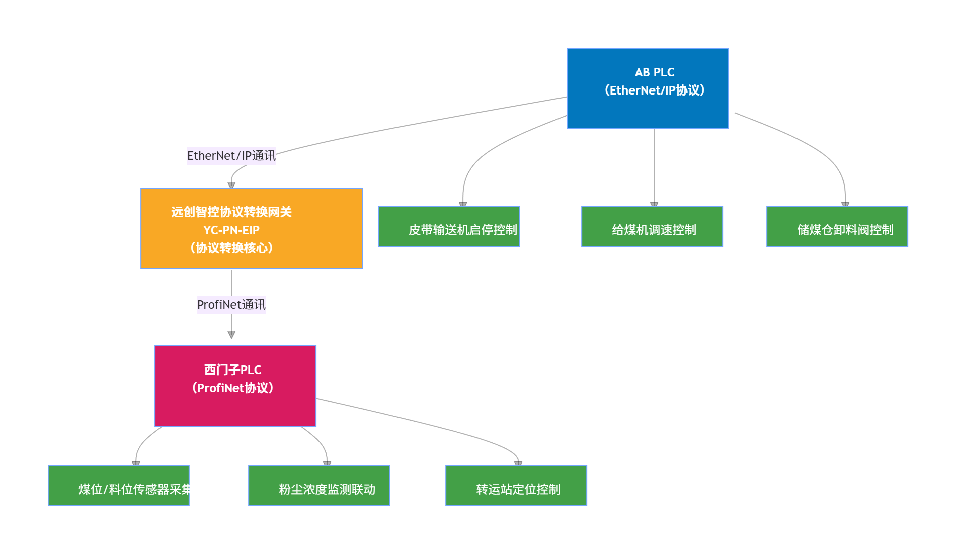 通过本项目的成功实施,远创智控YC-PN-EIP工业级协议转换网关再次证明:只要选对方案、选对产品,不同品牌PLC之间的"语言壁垒"完全可以被打破,为煤炭、电力、冶金等流程工业的储运智能化升级提供了可复制、可推广的典型样板